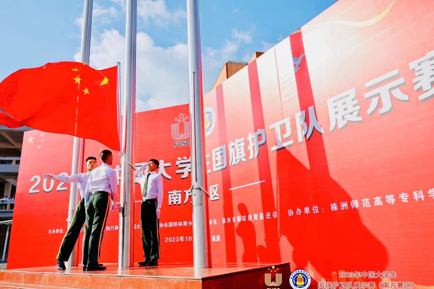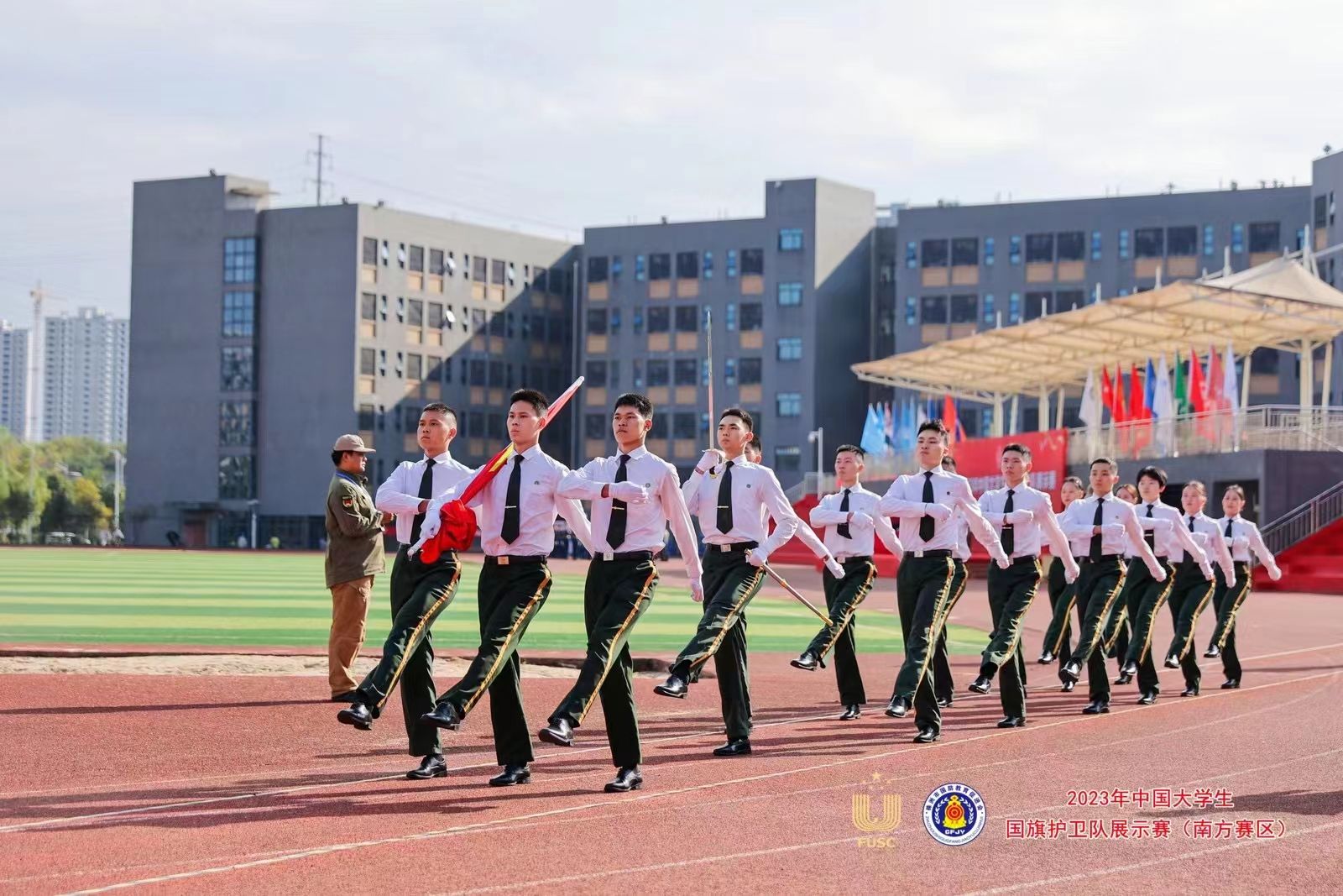 近日,2023年全国大学生国旗护卫队展示赛(南方赛区)在湖南株洲隆重举行。经过三天的激烈角逐,我校参赛队发扬团结拼搏、攻坚克难的精神,最终获得甲组第三名的好成绩,成功晋级全国总决赛。