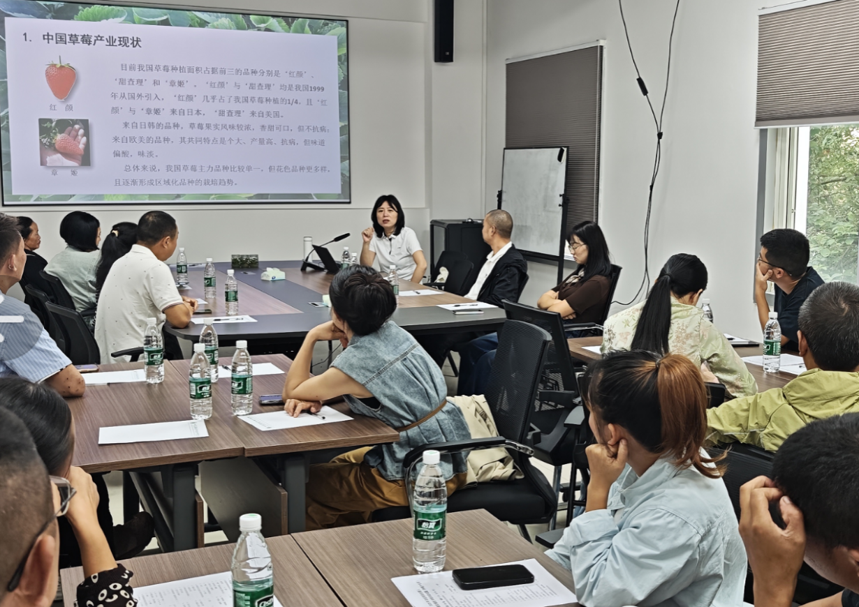 培训中,罗娅立足四川地区气候特点,紧密结合生产实际,从中国草莓产业发展现状、新品种介绍与种苗选择、花芽分化及其影响因素、草莓标准化生产关键技术、果实发育促进措施、常见病虫害预防等方面进行了系统讲授。她用通俗易懂的语言,将复杂的科研成果和技术原理转化为可直接运用于生产的操作方法,帮助学员破解种植过程中的技术难题。