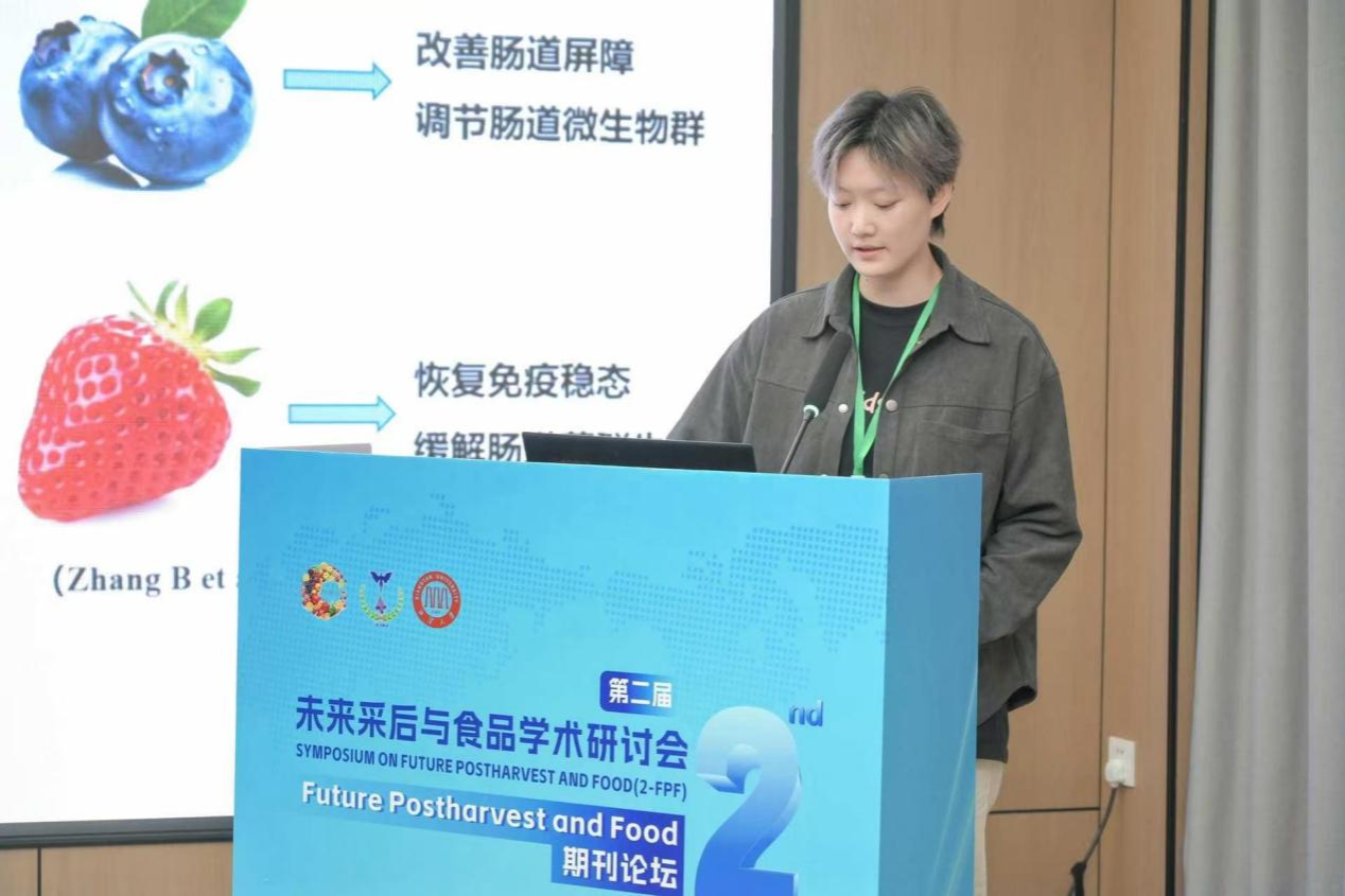 会议吸引了来自国内外食品科技界的专家学者和企业代表参会,食品学院秦文教授作为Future Postharvest and Food副主编出席了本次会议。Future Postharvest and Food期刊宣布了青年编委增选结果,四川农业大学食品学院青年教师张壹钦增选为期刊青年编委。秦文教授2023级硕士研究生徐溢作了题为《酶解猕猴桃汁缓解DSS诱导小鼠溃疡性结肠炎的效果和潜在机制探索》的报告,提供了富含可溶性膳食纤维的酶解猕猴桃汁在食品系统中用于治疗结肠炎症和相关疾病的深入见解,并阐明了相关作用机制。