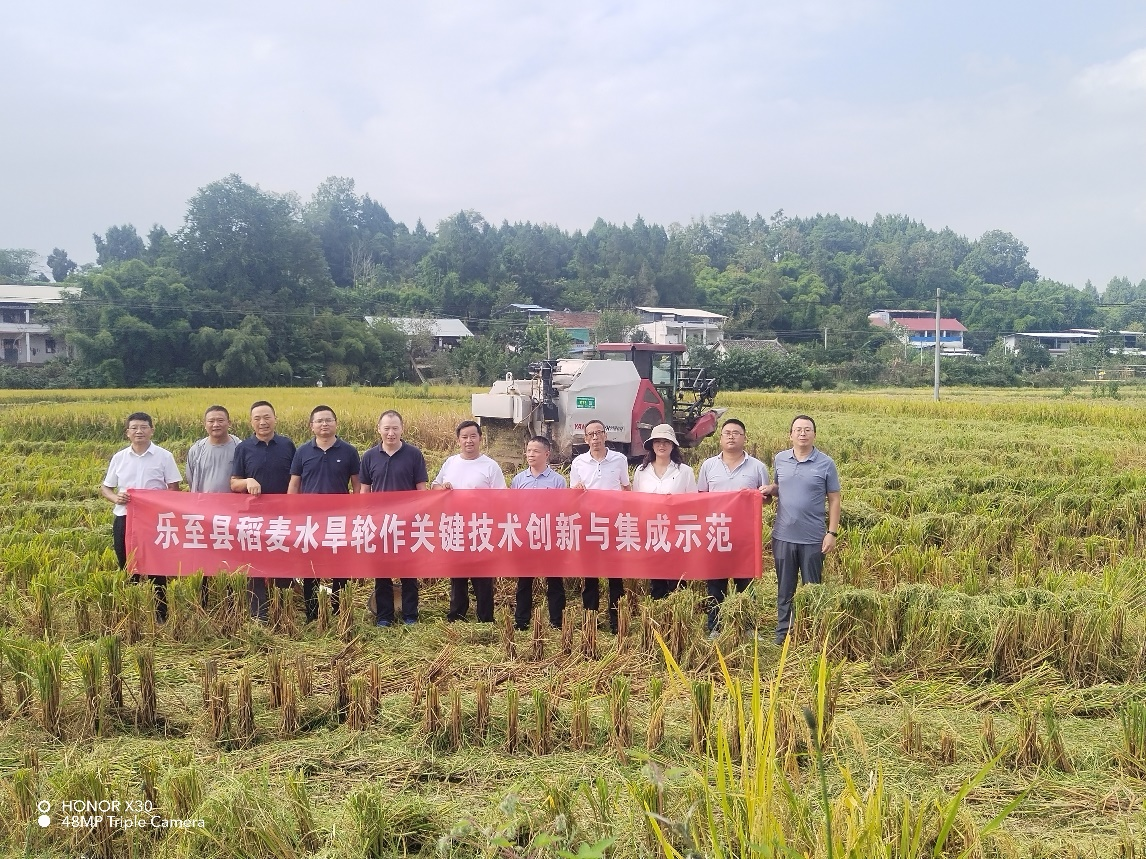 该项目由我校小麦研究所江千涛教授牵头,水稻研究所朱军副教授等组成的科技服务团具体实施。自2025年4月启动以来,团队深入乐至生产一线,系统开展试验选址、品种引育、技术集成与培训服务。在红仁粮油专业合作社基地,团队打造了2个百亩级“吨粮田”水旱轮作核心示范区,集中示范早熟高产小麦与水稻品种及配套技术。